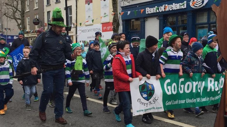On the day that Ireland won the rugby Grand Slam the young players were promoting the game at the Gorey St Patrick’s Day Parade. (Pic; Attracta Hempenstall).