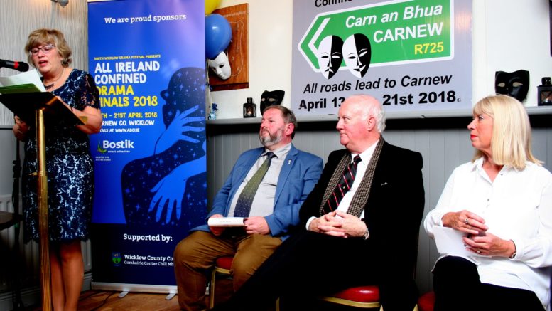 At the launch of the Bostik All-Ireland Confined Drama Festival in Carnew were Mary Doran, PRO,; Michael Johnston, Vice-Chairman, Amateur Drama Council of Ireland; Eamonn Doran, Chairman of the organising committee, and Anne Doyle, ex-RTE newsreader, who launched the festival programme.