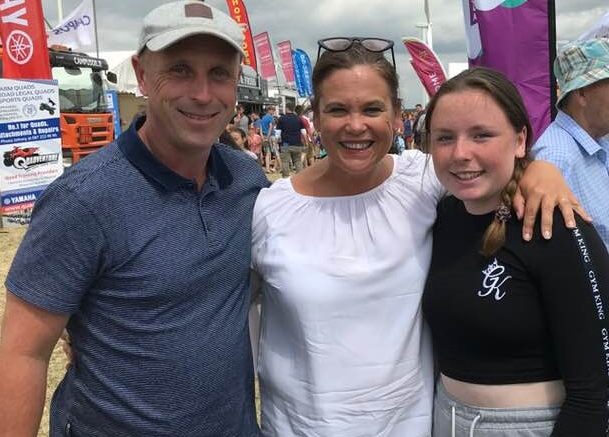 Sinn Fein President, Mary Lou McDonald, with Cllr Michael Roche and his daughter, Madison, at the Bannow Rathangan Agricultural Show on Thursday.