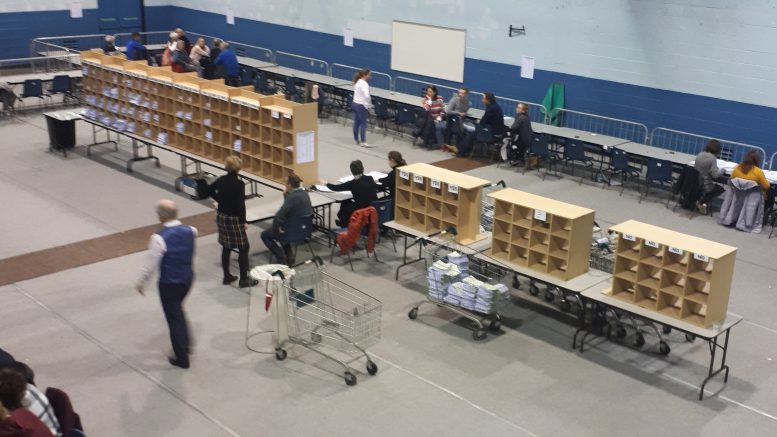 Counting in the Presidential Election taking place in Colaiste Bride, Enniscorthy.
