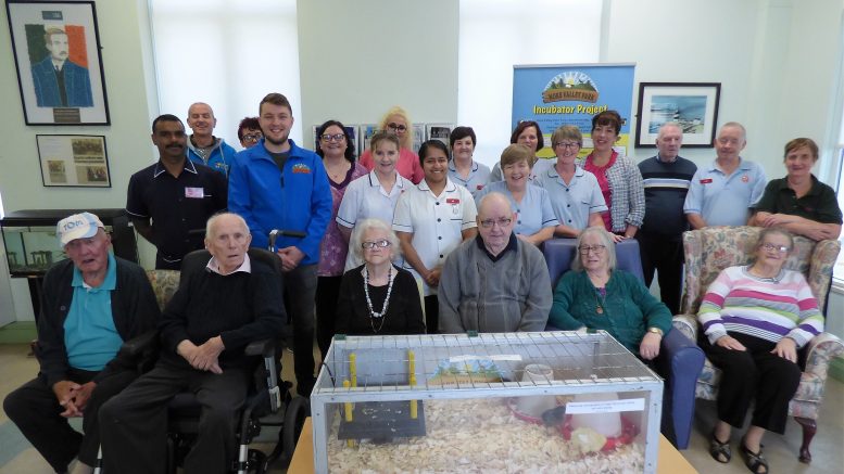Residents of New Haughton Hospital in New Ross have got excited by new arrivals in the form of five cheerful chicks that hatched from eggs held in an incubator in the lobby of the care facility.