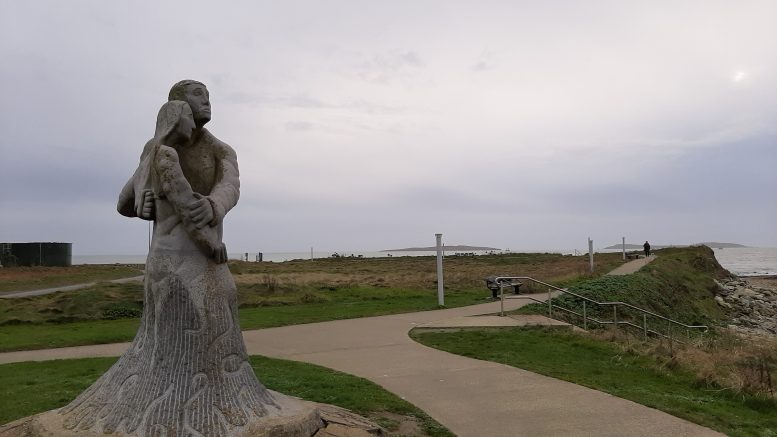 The VIGIL SCULPTURE (two grieving figures looking out to sea) by sculptor Ciaran O'Brien, at Kilmore Quay, is an emotional reminder of the perils of the sea as the search continues for a missing local fisherman. Pic; WexfordToday.com