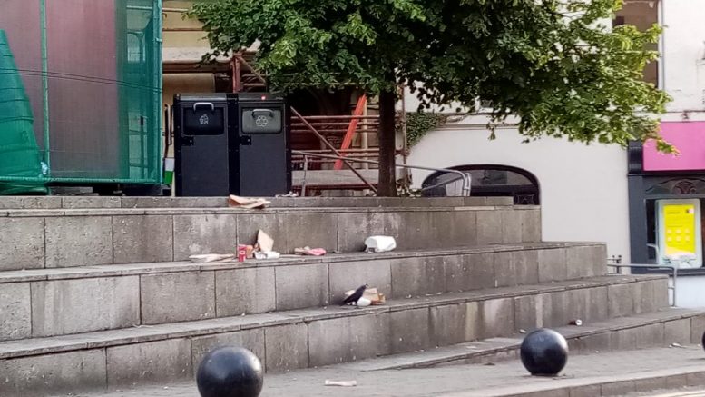 Another particular black-spot in terms of litter is the area around the market square. It seems that some people are inclined to use the steps there to sit down and eat take-aways, with the packaging often left behind on the steps.