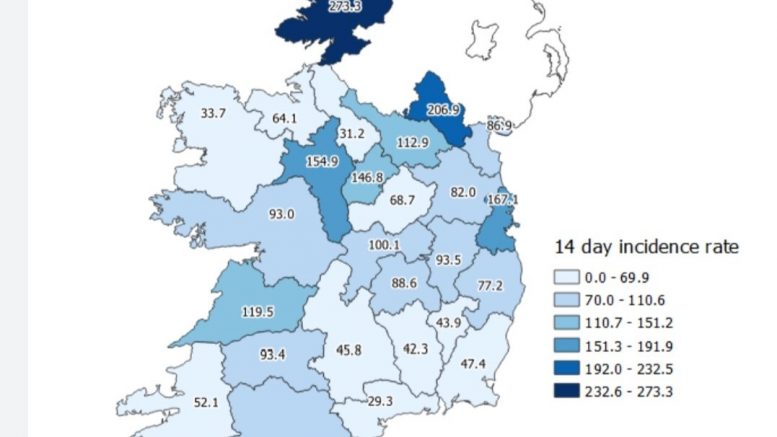 However we are still well below the National average, which has shot up to 114.3, Donegal continues to rise, now at 273.3, Monaghan 206, Dublin 167.1, Roscommon 154, and Longford 146, are now all a cause for concern.