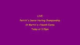 Clink the link below to watch today’s Pettitt’s Senior Hurling Championship final live from Innovate Wexford Park at 3.15pm. Commentary from Michael Dwyer. St Martin’s…